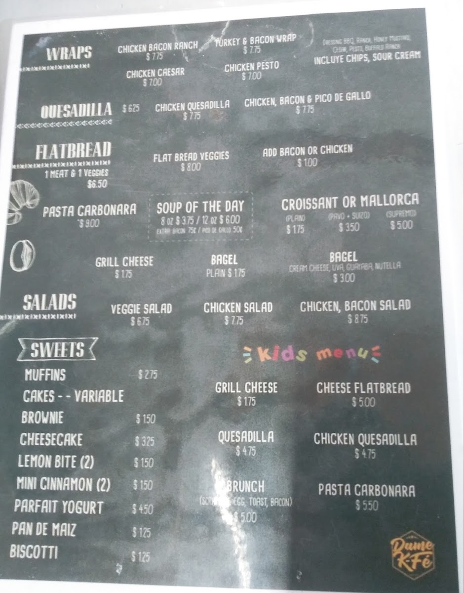 Dame K-fe Menu